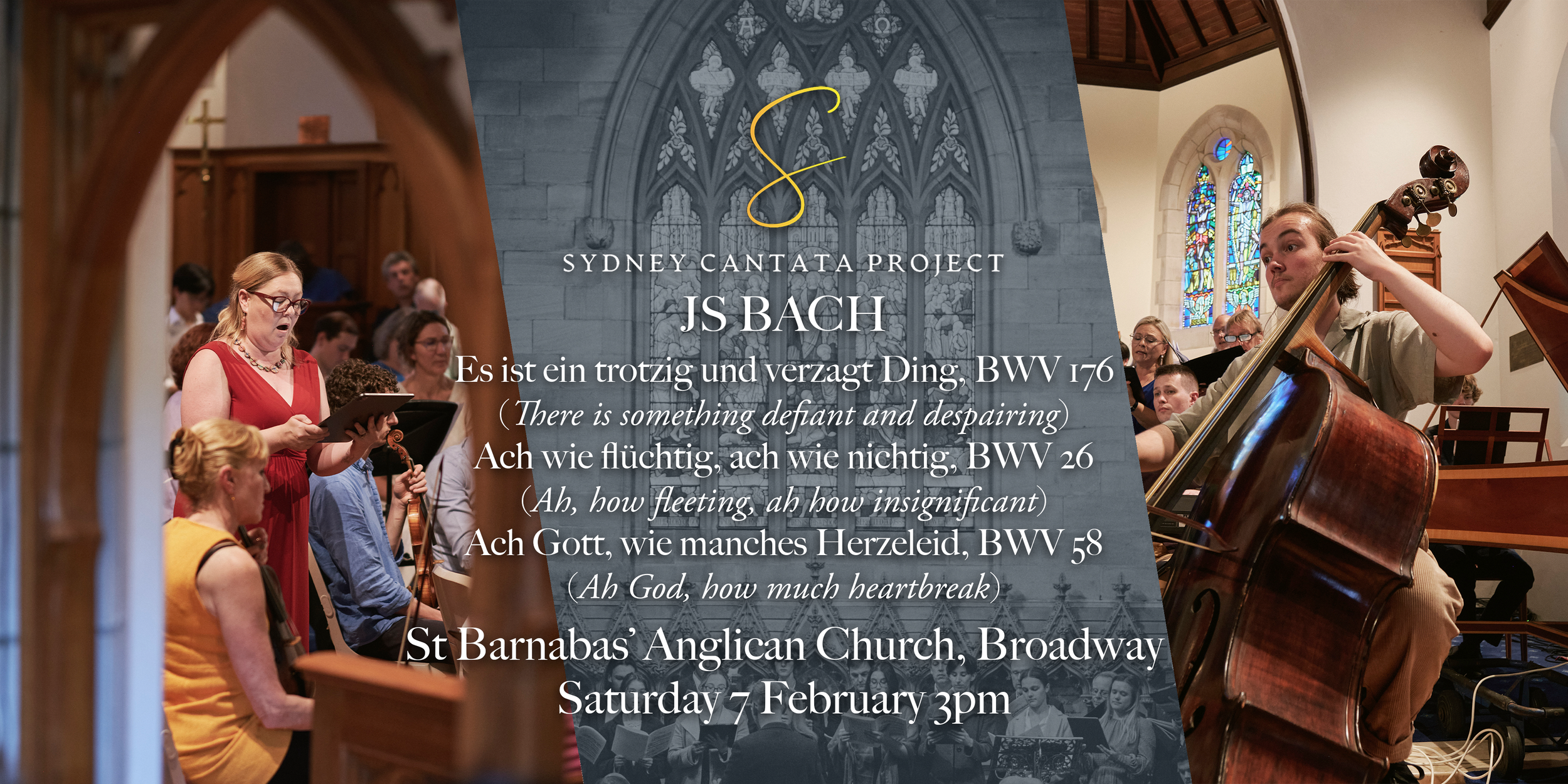 The Sydney Cantata Project opens its 2026 season with a performance of three cantatas by Johann Sebastian Bach: BWV 176, Es ist ein trotzig und verzagt Ding, BWV 26, Ach wie flüchtig, ach wie nichtig, and BWV 58, Ach Gott, wie manches Herzeleid. Written within a few years of each other, these works address the instability of the human heart, the experience of suffering, and the transience of earthly life.